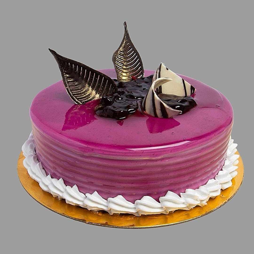 Vanilla sponge cake slice is layered with flavourful blueberry filling and cream inside and blueberry glaze on top of it.